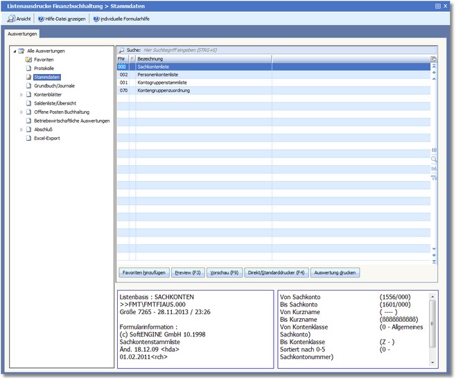 Über diese Auswertung können Sie den Kontenrahmen ausdrucken.