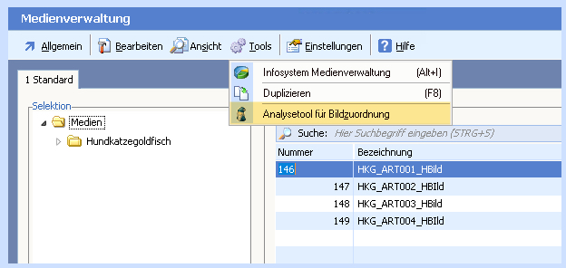 Im nächsten Schritt wird das im Menü „Tools“ das „Analysetool für Bildzuordnung“ gestartet.