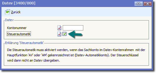 Aktivieren Sie die Option DATEV-Automatikkonto.