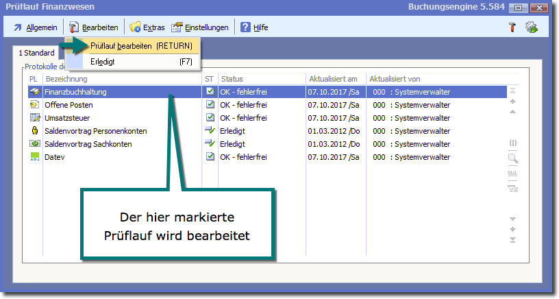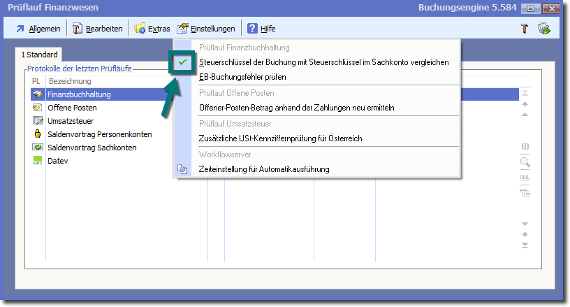 Navigation:  Finanzbuchhaltung > Monatliche/periodische Arbeiten > Finanzbuchhaltung prüfen >