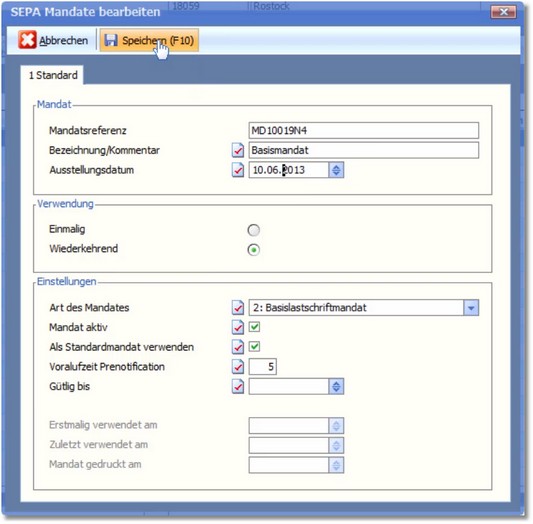 Weiterhin müssen in den Bankstammdaten die Einstellungen für SEPA vorgenommen werden.