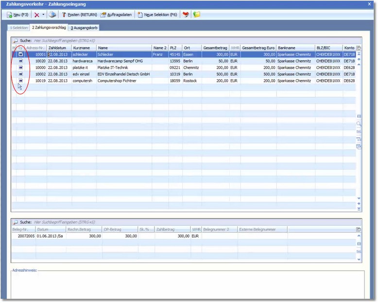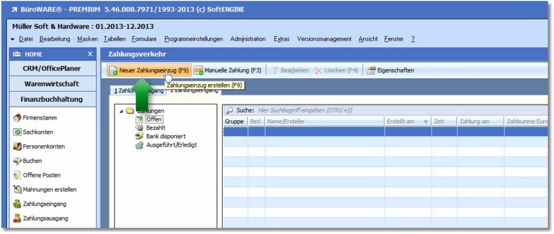 4. Öffnen Sie nun den Zahlungseingang und erstellen Sie wie gewohnt einen neuen Zahlungsvorschlag.