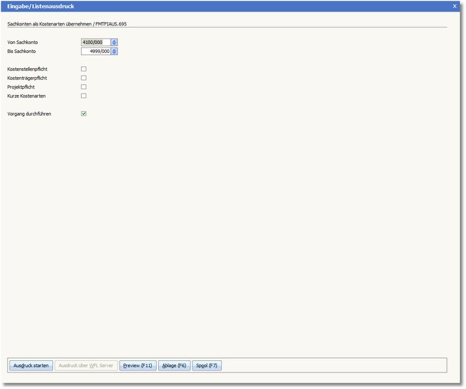 3. Legen Sie in den Feldern VON SACHKONTO | BIS SACHKONTO den Sachkontenbereich fest, von dem Sie Kostenarten erstellen möchten.