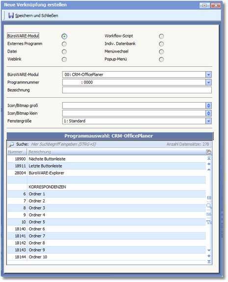 BüroWARE öffnet den Dialog "Neue Verknüpfung erstellen".