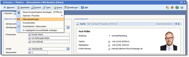 2. Im Dialog "Erfassen/Ändern Adressdaten" klicken Sie auf "Bearbeiten - Adressbeziehungen".