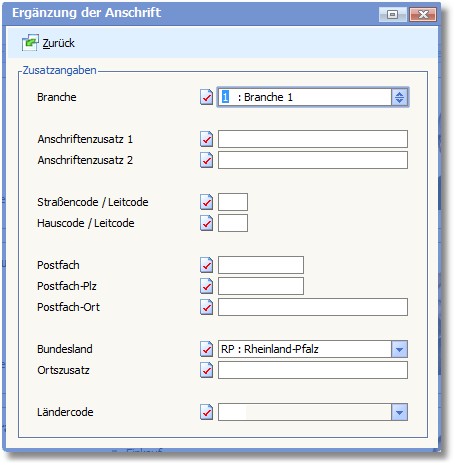In diesem Dialogfenster können Sie zusätzliche Angaben zur Anschrift hinterlegen: