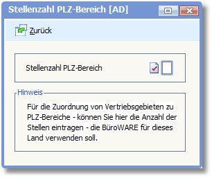 Tragen Sie hier die Anzahl der Stellen für den PLZ-Bereich ein.