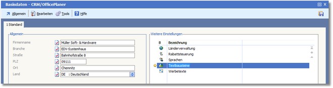 Navigation:  CRM/OfficePlaner > Stammdaten > Basisdaten >