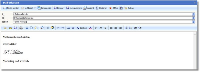 Das Programm öffnet den Dialog „Mail erfassen".