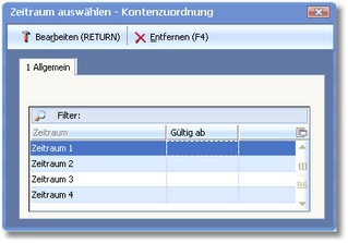 3. Wählen Sie einen der 6 möglichen Zeiträume aus, deren Kontenzuordnung geändert werden soll und klicken Sie auf <Bearbeiten>.