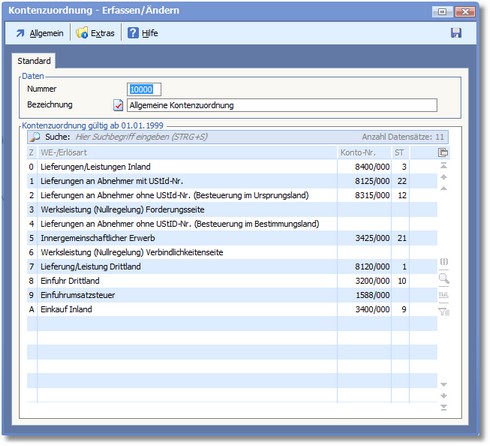 Navigation:  Warenwirtschaft > Stammdaten > Basisdaten > Kontenzuordnung >