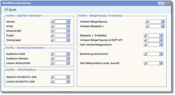 Der Bereich "Workflow - CRM/OfficePlaner ..."