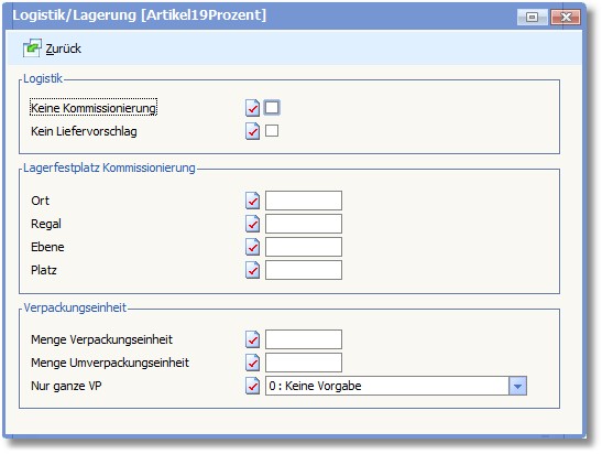 So können Sie Einstellungen für Logistik/Lagerung hinterlegen: