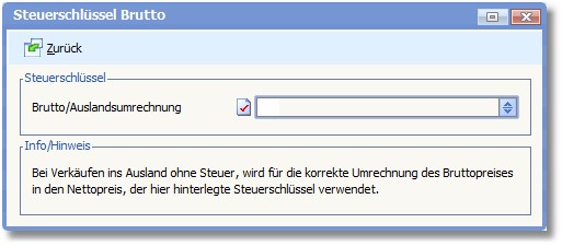 Tragen Sie hier den entsprechenden Steuerschlüssel ein.