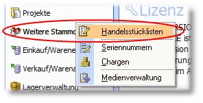 1. Klicken Sie im Arbeitsplatz mit der Maus auf die Gruppe "Weitere Stammdaten" und dann auf "Handelsstücklisten"..