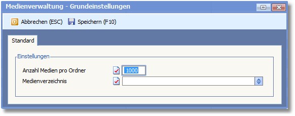 In den Grundeinstellungen der Medienverwaltung werden folgende Einstellungen festgelegt: