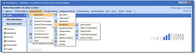 1. Klicken Sie mit der Maus im Hauptmenü auf "Warenwirtschaft > Stammdaten > Konditionen".
