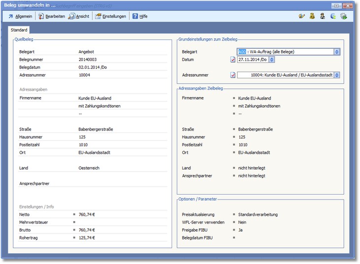 Der Dialog "Beleg umwandeln in..."