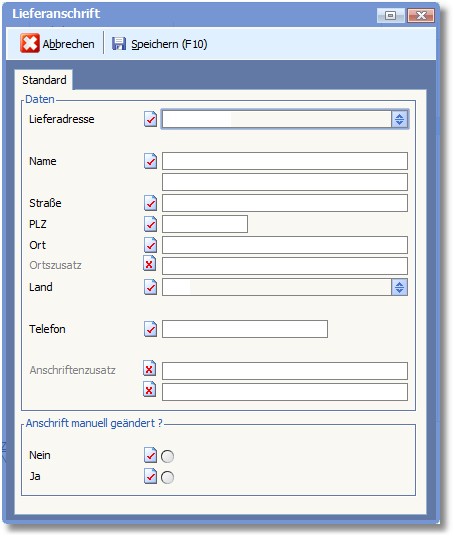 Hier können Sie eine abweichende Lieferanschrift für den Beleg angeben.
