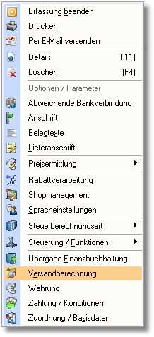 3. Rufen Sie über die rechte Maustaste oder mit [SHIFT]+[F10]das Popup-Menü auf und klicken Sie mit der Maus auf den Menüeintrag "Versandberechnung".