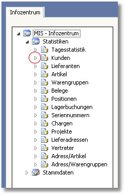 1. Klicken Sie mit der Maus im Infozentrum auf die Pfeile links neben "MIS-Infozentrum",