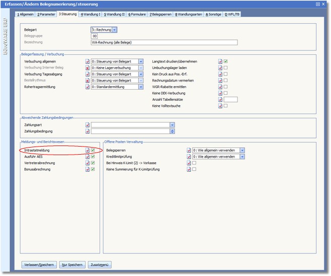 Damit Belege und Artikelpositionen bei der Erstellung von Monatsmeldungen berücksichtigt werden, muss die Beleggruppe (Lieferschein, Rechnung, Gutschein) als intrastatfähig gekennzeichnet sein.