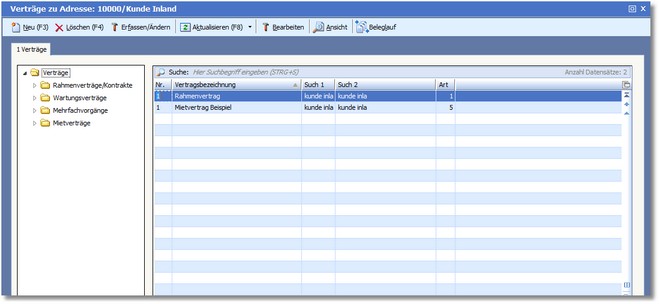Für jeden Kunden können im Vertragscenter beliebig viele Verträge angelegt werden, welche über einen Beleglauf automatisiert werden können.