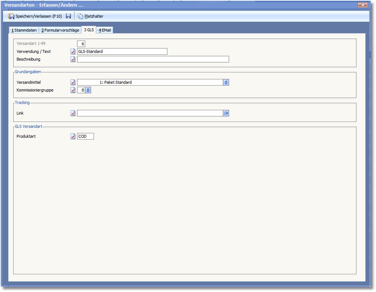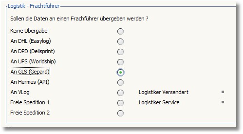 << Hier KLicken um eine Inhaltsübersicht anzuzeigen >> Navigation: Warenwirtschaft > Lagerverwaltung > Lager-/Logistikcenter > Logistiker "GLS" (Gepard) |