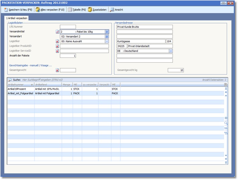 Navigation:  Warenwirtschaft > Lagerverwaltung > Lager-/Logistikcenter > Packstation > Verpacken >